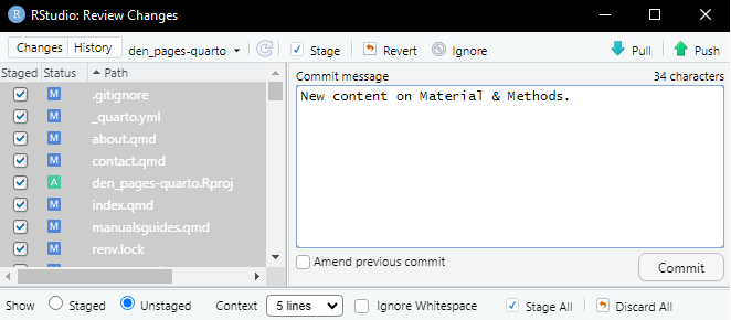 Download and install Quarto from its official website and according to your PC operating system. This software is the platform on which the DEN pages website is built.