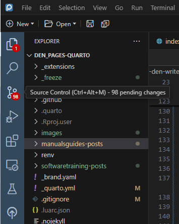 .qmdfile), we just need to open the desired file in our IDE (RStudio, Positron or any other) and make the corresponding edits.If we want to add a new post, it will be enough to create the corresponding