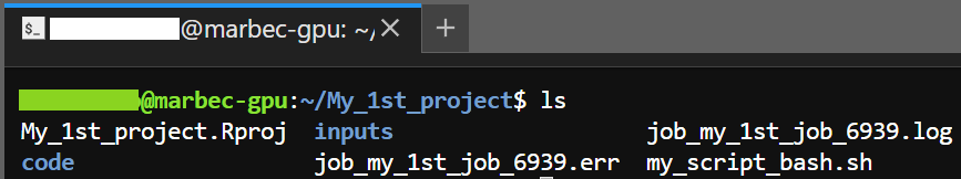 L’une des principales recommandations lorsque l’on travaille avec R est de bien définir un dossier qui contiendra les fichiers d’entrée/sortie ainsi que les scripts nécessaires pour obtenir nos résultats. Avoir un compte actif sur Marbec-DATA signifie qu’il existe également un dossier portant notre nom d’utilisateur, auquel Marbec-GPU peut accéder.