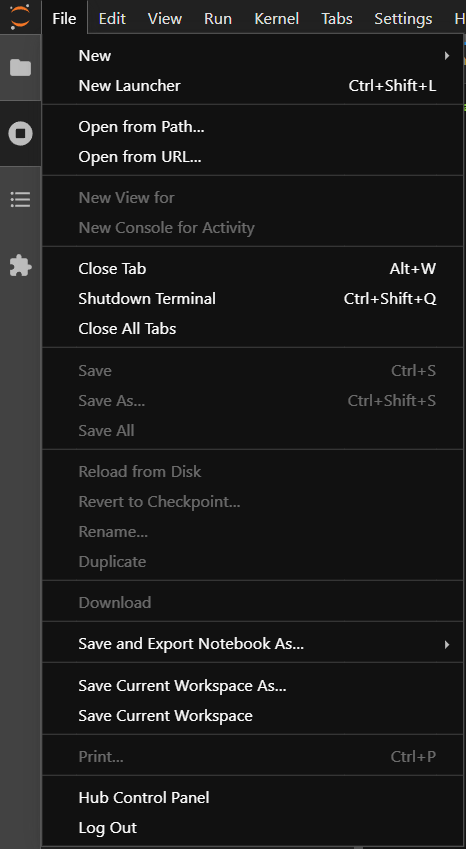 - Open JupyterLab and Open a Terminal window by selecting the corresponding icon.