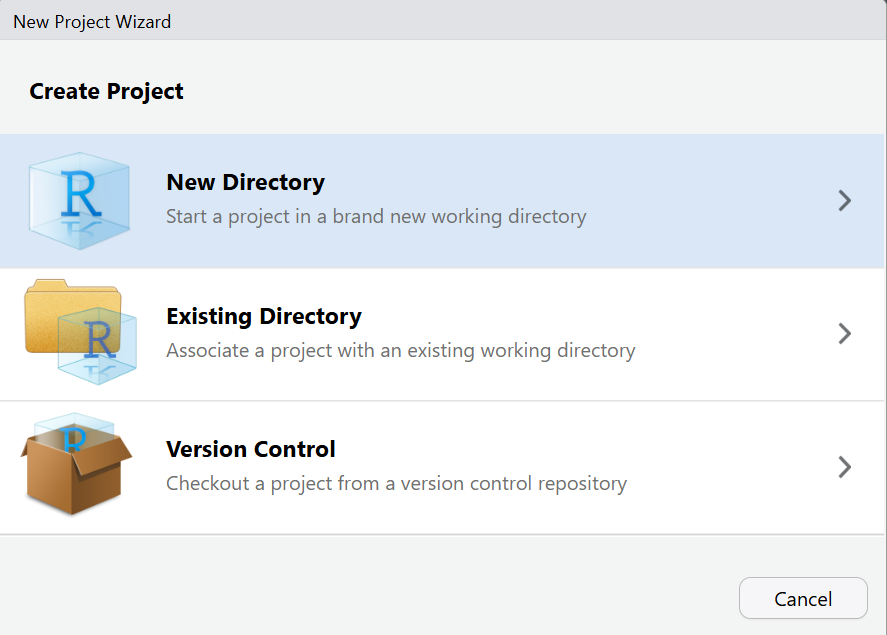 La première étape consiste à créer un dossier qui servira de répertoire de travail. Il existe plusieurs façons de le faire : via l’interface web de Marbec-DATA, via une fenêtre de terminal JupyterLab ou en créant un projet RStudio Server. Ici, nous utiliserons la troisième méthode, car elle nous permet de tout gérer au sein d’un projet RStudio.