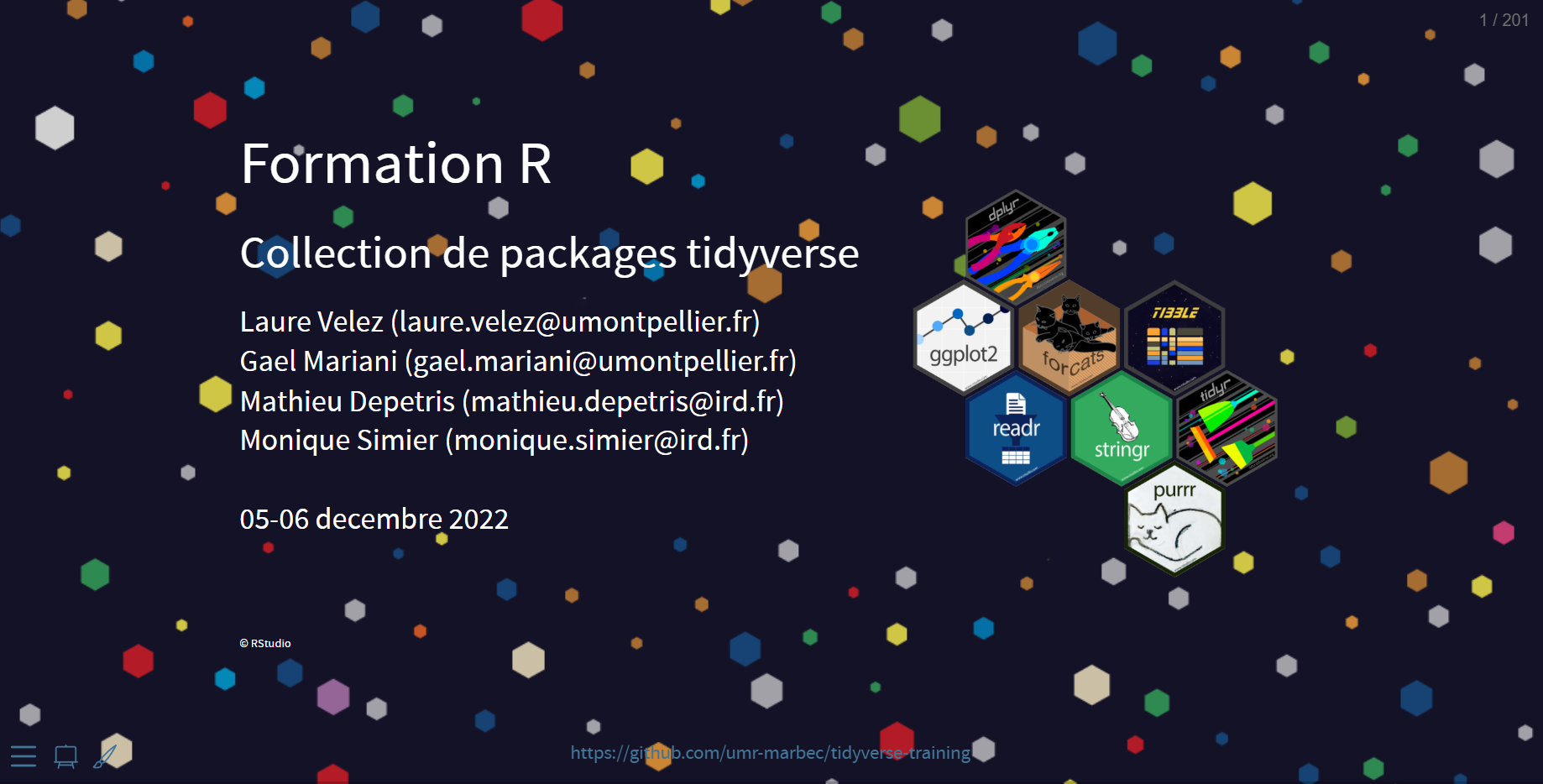 Cette section est dédié à référencer les formations et supports associés mis à disposition de l’UMR et de ses partenaires. En lien avec le caractère spécifique des formations, il est possible que les supports associés ne soient pas disponibles en plusieurs langues.